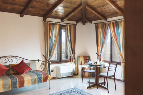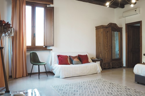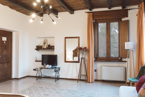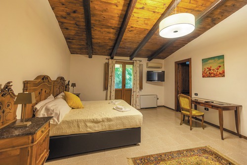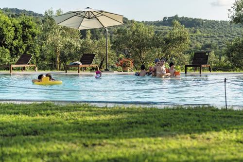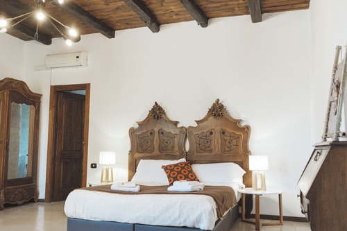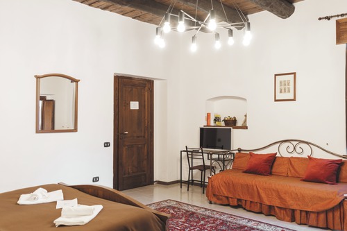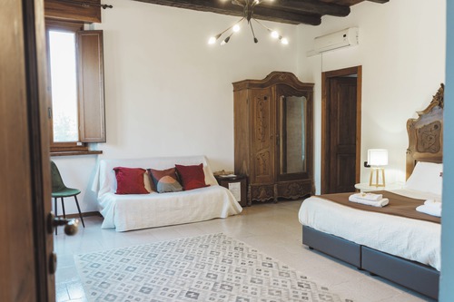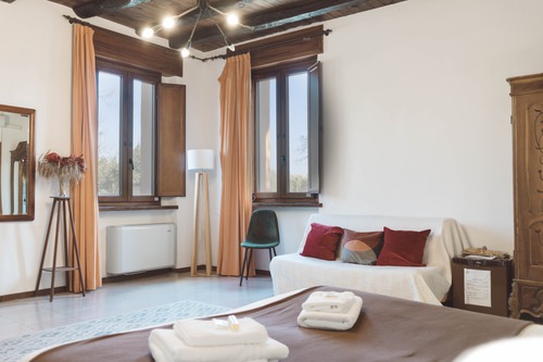 15 chambres réparties entre l'ancienne ferme (Casale) et l'entrepôt attenant (Capanno). Les 2 bâtiments ont été soigneusement rénovés, préservant leurs éléments architecturaux d'origine, tels que les authentiques plafonds à poutres apparentes. Sols carrelés. Il Casale offre 9 chambres spacieuses et confortables (max. 4 personnes, mobilier simple et classique), 2 terrasses panoramiques et un salon commun. Il Capanno: 6 chambres confortables (max. 4 personnes, mobilier moderne). Nous vous réservons une chambre supérieure dans le bâtiment principal (25-30 m², max. 4 personnes). Lit supplémentaire (3e personne): € 34/nuit, (4e personne): € 28/nuit. Pas d'ascenseur (3 étages). 5 bungalows (cuisine, salon, véranda ou patio) pour ceux qui recherchent calme et intimité.