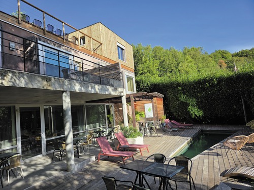 accueil chaleureux par le propriétaire Christophe qui partage volontiers ses connaissances sur la région. Superbes pièces design, éléments authentiques et tissus modernes créent une ambiance agréable, sans perdre son style familial. Lounge-bar. Rooftop avec galerie de peinture. Petit déjeuner exquis préparé avec des produits maisons, frais et locaux. Au restaurant, savourez de délicieux plats locaux avec des produits saisonniers, table traditionnelle de qualité. Par beau temps, mangez en terrasse. Détente à la petite piscine en plein air ou au sauna, petit espace fitness (gratuits). Pas d'ascenseur, mais une passerelle qui relie le parking aux chambres, toutes au 1er étage. Des escaliers et une rampe d'accès mène à la réception.