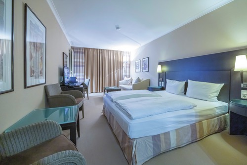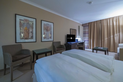 les 80 chambres sont dotées d'équipements contemporains pour un séjour relaxant. Nous réservons pour vous une chambre confort (24 m²) avec bureau. Le cadre verdoyant garantit une nuit de sommeil optimale. Lit supplémentaire (3ème pers.): € 53/nuit. Pas de climatisation.
