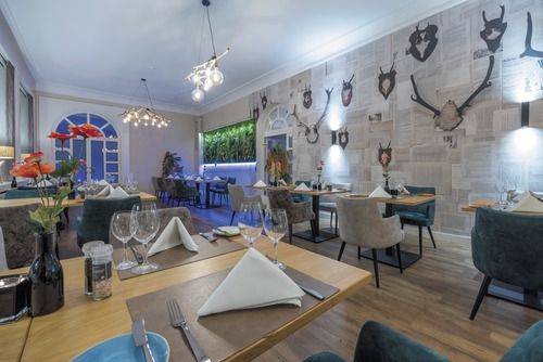 ce bâtiment, situé au bout d'une allée bordée d'arbres, date de 1926. Éléments historiques et confort moderne s'y côtoient harmonieusement. Au restaurant Blattwerk, vous êtes les bienvenus pour un petit déjeuner copieux, un déjeuner savoureux ou un délicieux dîner. Le chef y prépare avec passion des plats régionaux. Il est agréable de se détendre sur la grande terrasse avec une boisson fraîche ou dans le magnifique jardin. Salle de fitness. Espace bien-être avec sauna, hammam et cabine infrarouge (payant). Parking gratuit. Pas d'ascenseur.