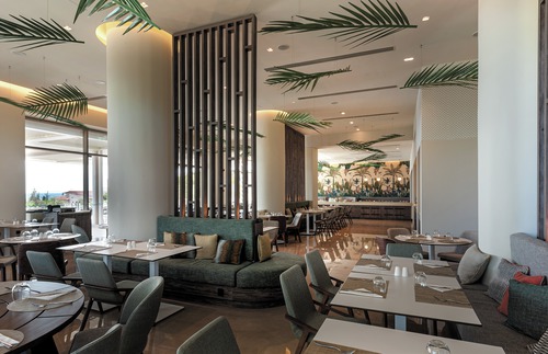 ce complexe a sur le plan détente et gastronomie une belle offre. Avec: 3 restaurants à la carte, 1 restaurant buffet , le 'Seasons' (plats méditerranéens et internationaux pour le petit déjeuner et dîner). 4 Bars dont 2 à la plage. A la plage: cabines, douches, coffres, chaises longues et parasols. Activités nautiques (payantes); wakeboard, canoé, plongée,... La piscine extérieure Il Centro avec vue sur la mer et fauteuils flottants. Au sommet du domaine, une deuxième piscine en plein air, Everheights avec son bar Hokyo (snacks asiatiques). Agréable spa avec piscine intérieure, sauna, bain turc, fitness (gratuits), massages et soins de beauté (payants). Petite plaine de jeux pour les enfants et club enfants (mi-juin-mi-septembre, 10h-18h). Boutique avec de beaux articles.