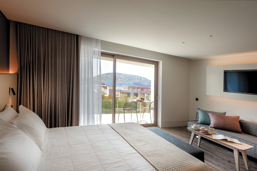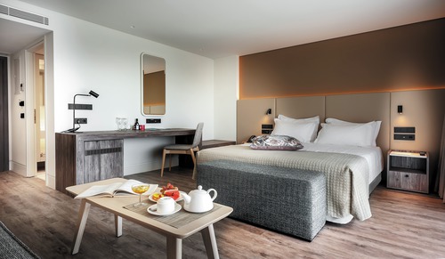 chambres modernes dans des tons clairs avec terrasse et balcon. Chambres standards deluxe (22 m², max. 2 personnes) avec ou sans vue mer. Chambres supérieures deluxe (30.5 m², max. 3 personnes) avec coin salon séparé, avec ou sans vue mer. Suites familiales spacieuses (39 m², max. 4 adultes ou 2 adultes et 2 enfants, 1 chambre à coucher séparée). Lit supplémentaire (3e et 4e adulte): 20% de réduction.