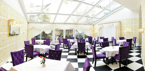 derrière la façade de ce bâtiment de style Art Nouveau datant de 1852 se trouve le restaurant Royal. Les tissus raffinés et les lustres en cristal vous feront voyager dans le temps. Au Café, vous pourrez vous détendre en prenant un verre ou un morceau de gâteau. Il est aussi agréable de profiter des terrasses. Le Blue Bar est un lieu de rencontre apprécié où vous pourrez terminer la journée avec un délicieux cocktail. Distribiteur de snacks. Spa avec sauna, espace détente et grotte d'eau. Massages possibles.