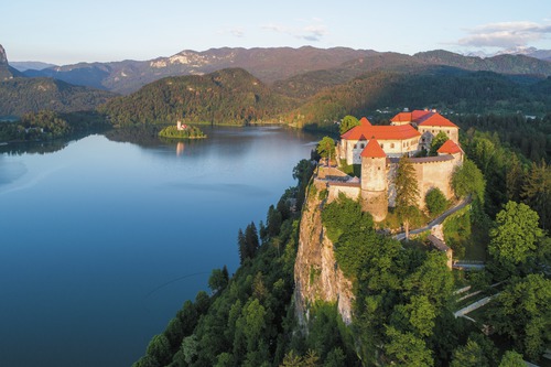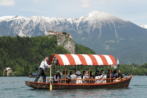Plus encore que la ville, le lac du même nom, avec en son centre, une petite île abritant une église, l'image la plus emblématique de la Slovénie. Pour accéder à l'église, il faut gravir un escalier raide de pas moins de 99 marches. Le marié est donc de préférence sportif. Un bateau typique de Pletna vous y emmènera. Vous pourrez également profiter d'un beau panorama sur les alentours depuis le château situé sur un haut rocher.