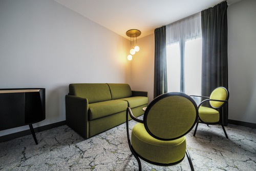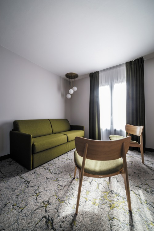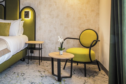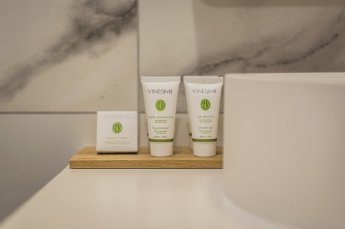 de 41 kamers liggen verdeeld over 3 gebouwen die luisteren naar de namen van vergeten druivensoorten: Arbanne, Petit mélier en Fromenteau. Verzorgingsproducten. Ook hier vormen de overwegend goudgele tinten een subtiele verwijzing naar de omgeving. Alle moderne faciliteiten zijn aanwezig in de kamers.