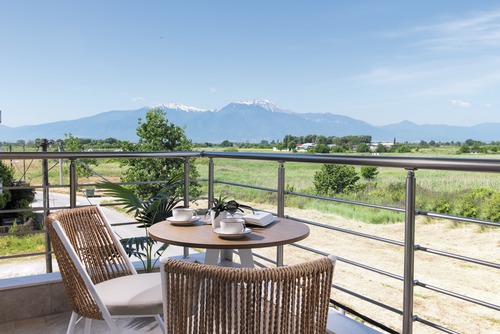 genesteld tussen de zee en de bergen op amper 200 m van het strand van Kolimvisis. Een rustige locatie maar toch vlak bij de restaurants, bars en winkeltjes. Breng zeker een bezoek aan het pittoreske dorpje Palaios Panteleimonas (op 42 km) gelegen op 700 m op de helling van de Olympusberg. Verder ook Litochoro (op 28 km), een authentiek dorp met smalle straatjes. De oude stad Dion (op 30 km) en het kasteel van Platamon (op 42 km), een imposante middeleeuwse vesting met een adembenemend zicht op de zee en op de Olympusberg, lonen de moeite. Op deze berg, waarvan de hoogste top 2.918 m hoog is en waar de 12 olympische Goden huizen, zijn tal van sportieve activiteiten mogelijk zoals fietsen, wandelen, klimmen,... Tenslotte ook nog het klooster van Agios Dimitrios (op 42 km) dat op de Unesco-Werelderfgoedlijst staat.